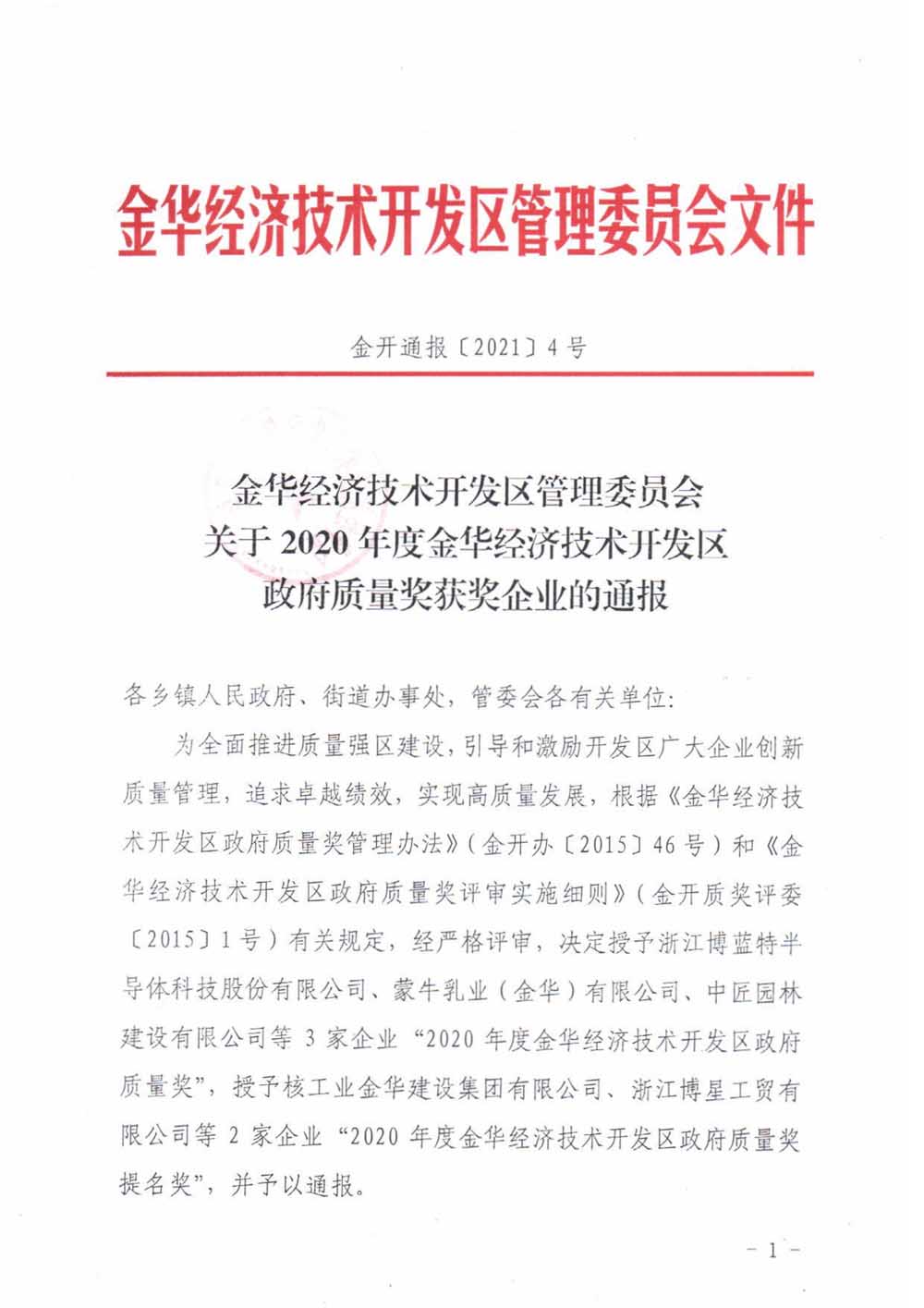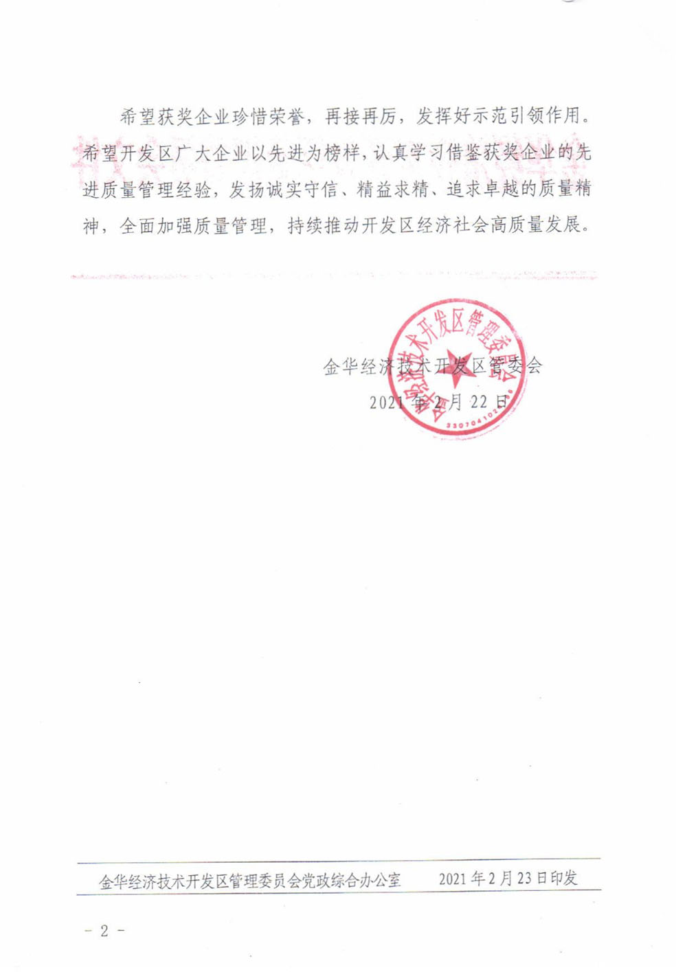 Document of Management Committee of Jinhua Economic and Technological Development Zone
