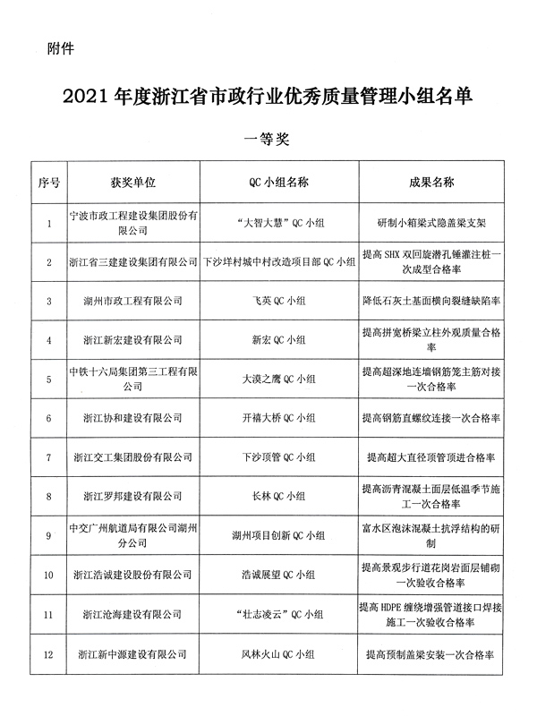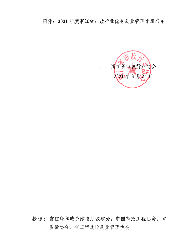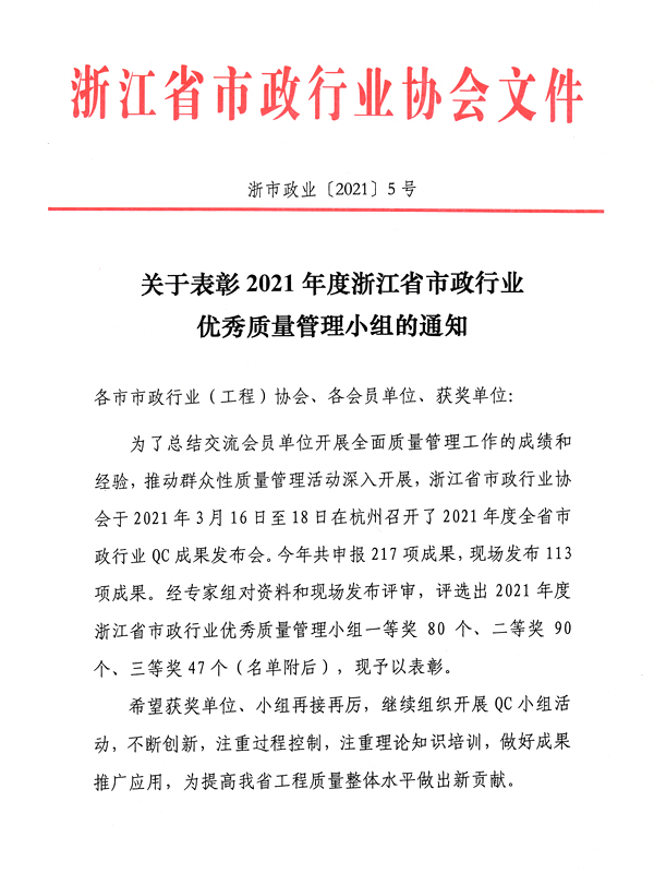 Notice on Commending excellent quality management group of Municipal Industry in Zhejiang Province in 2021
